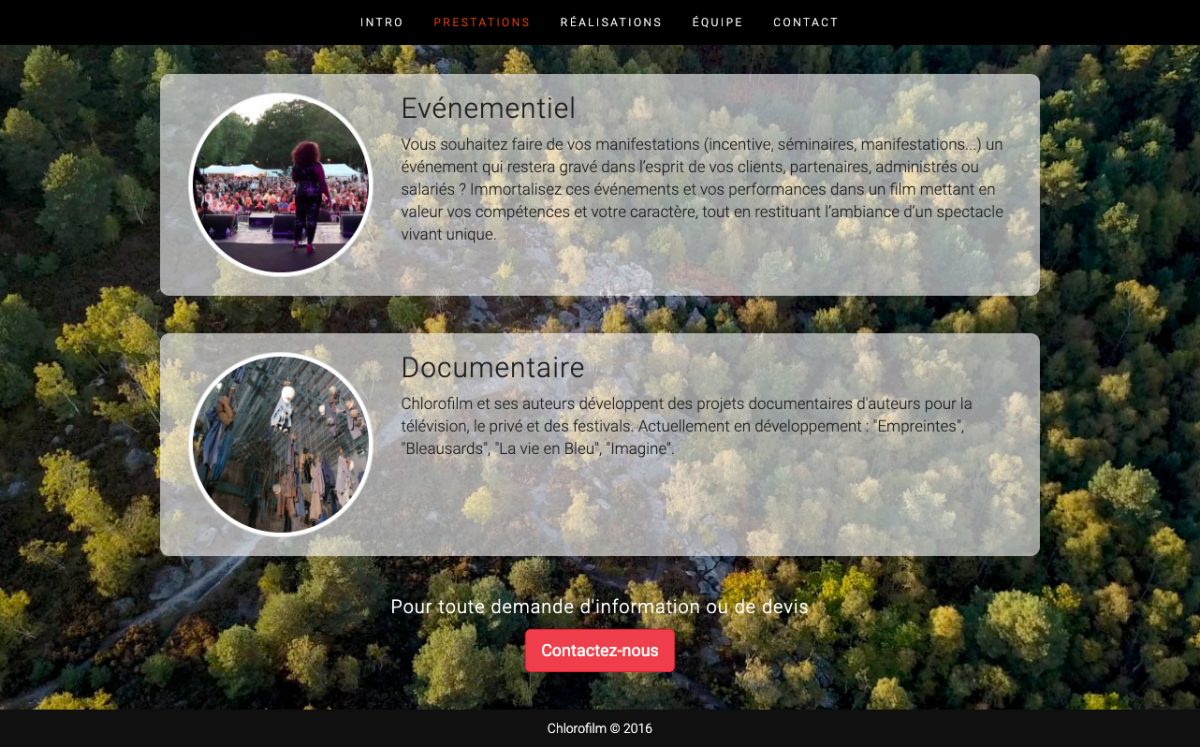 Développement d'un site Wordpress pour la société de production vidéo Chlorofilm destiné à présenter leurs activités