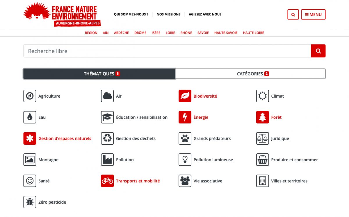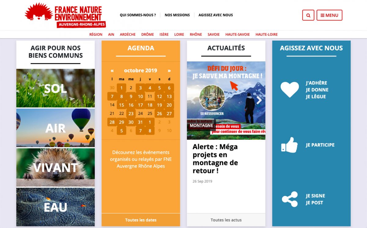 Développement d'un site internet institutionnel pour le réseau FNE Auvergne-Rhône-Alpes destiné à publier et relayer les actions réalisées par les fédérations