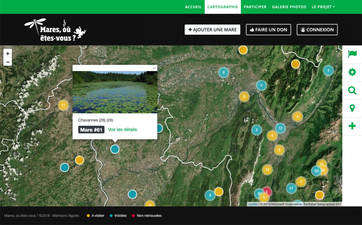 Développement du site cartographique et participatif pour l'Observatoire des mares et leur réseaux en Rhône-Alpes