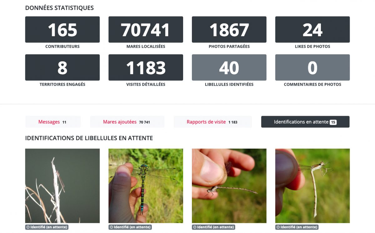 Les experts en identification de libellules ont également accès au back office pour valider les identifications d’espèces de libellules proposées par les participants de l’observatoire.